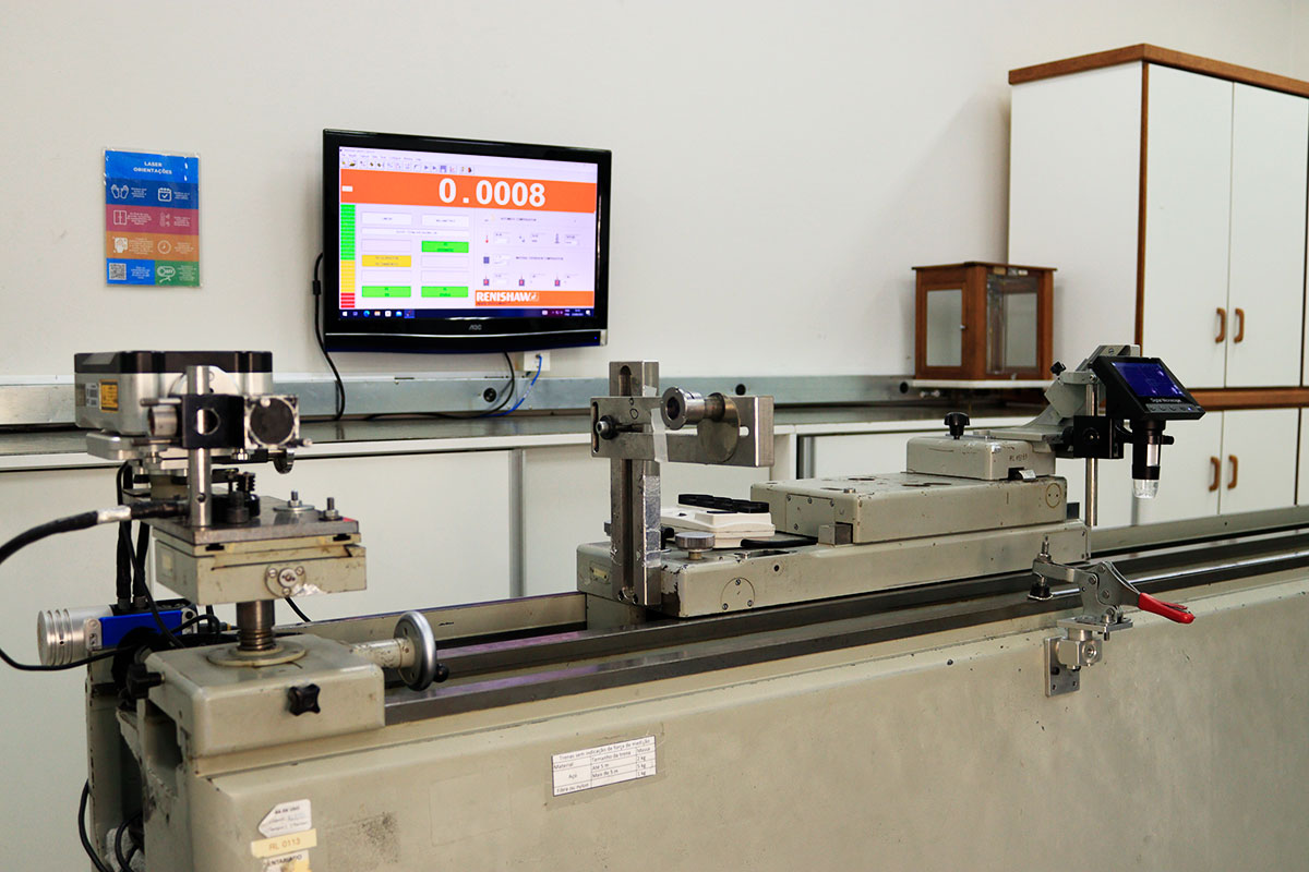 A medição linear com laser é o sistema de referência para calibração de máquinas e inspeção de grandes distâncias, com exatidão submicrométrica.